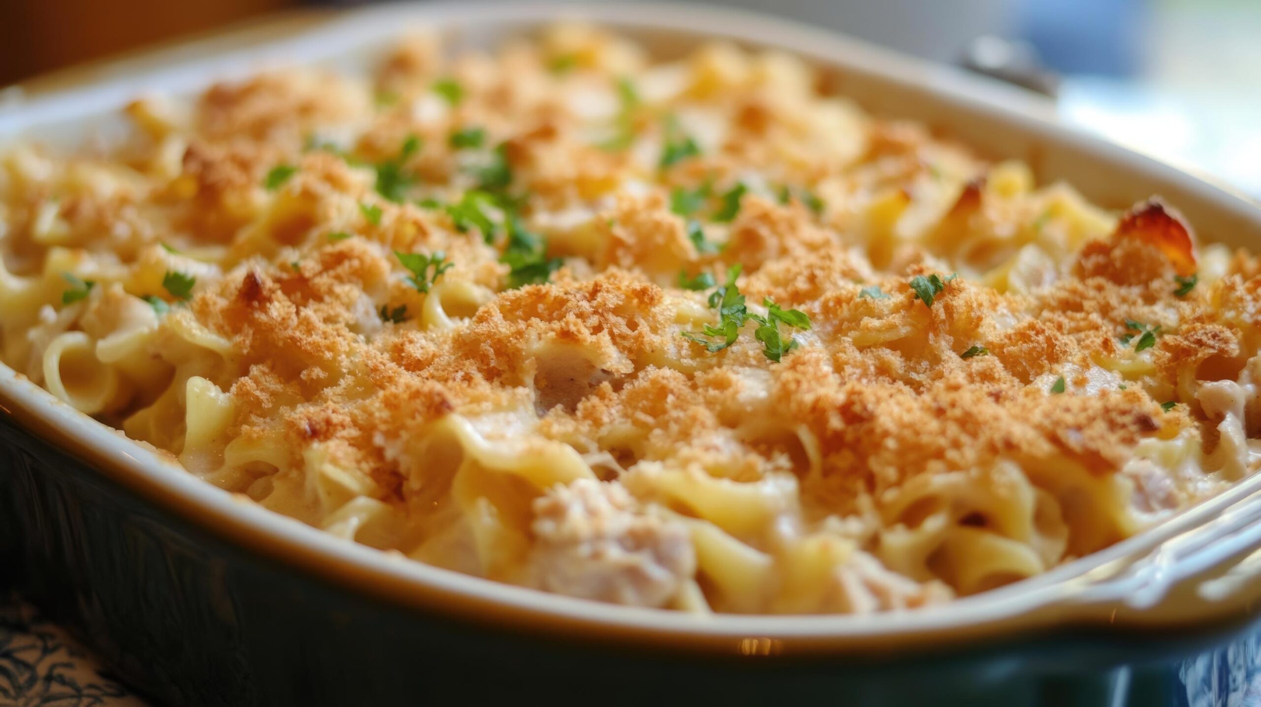 - Before serving, crush some chips finely and sprinkle over the tuna mixture spooned into a greased baking dish.