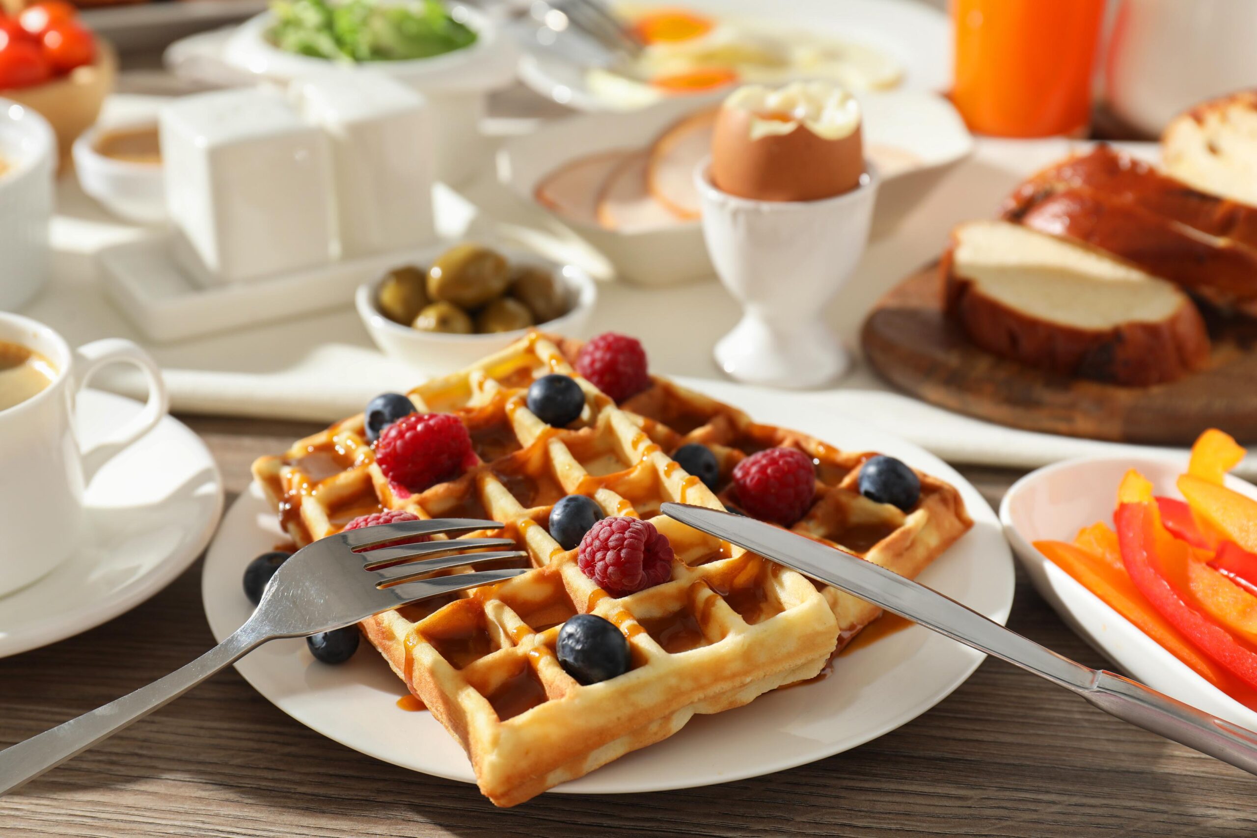 - Pour the mixture into a hot waffle iron and sprinkle 2 tablespoons of your chosen filling over it.
